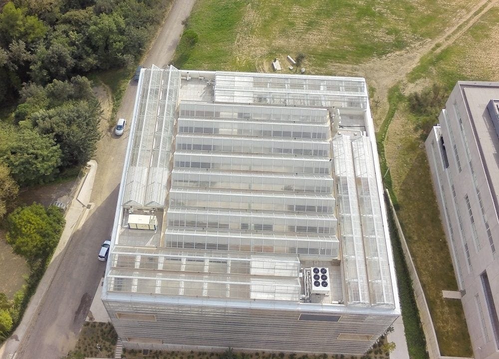 La cubierta del edificio acoge la zona de experimentación agrícola, con estructuras de invernadero y pérgolas. El interior está distribuido en módulos desmontables, cerrados y climatizables. Cuenta también con cuatro patios pequeños, cubiertos y sin fachadas interiores, lo que permite iluminar los espacios de trabajo y regular de manera sencilla pero muy eficiente las condiciones ambientales interiores de todo el edificio.