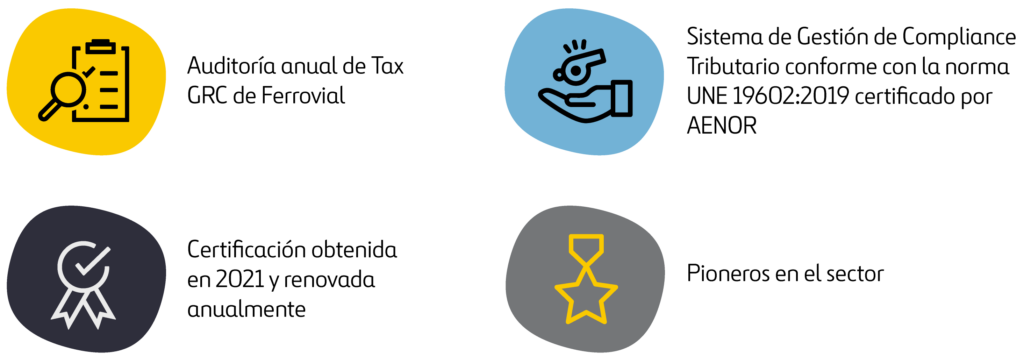 Tenemos un compromiso férreo con los principios de buenas prácticas tributarias. Realizamos un ejercicio de transparencia de la información fiscal con los distintos stakeholders. Aplicamos los criterios que conforman la gobernanza, riesgos y cumplimiento del sistema fiscal de Ferrovial (Tax GRC).