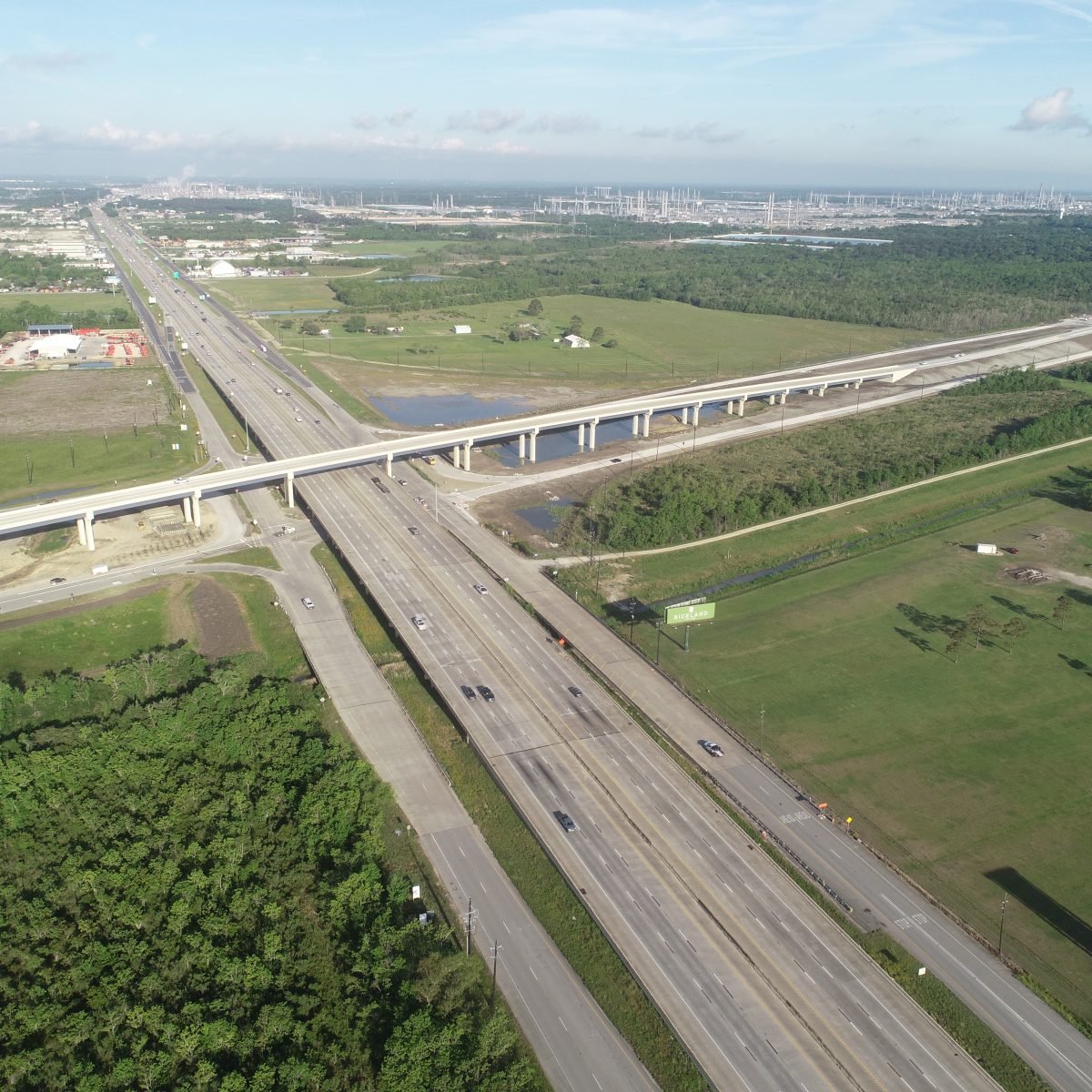 US-59/I-69 N, IH-10 and SH 146. Reduces congestion on area roadways while providing more travels options for the motorists.