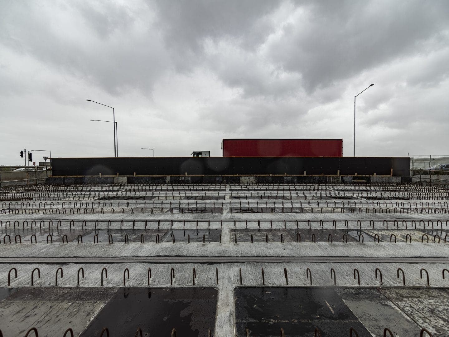 Western Roads UpgradeIn the middle of the flatlands, a crane’s arm is raised. It pumps concrete without stopping. At the ground level is the metal framework. Little by little, the two elements meet, realizing they are old acquaintances.