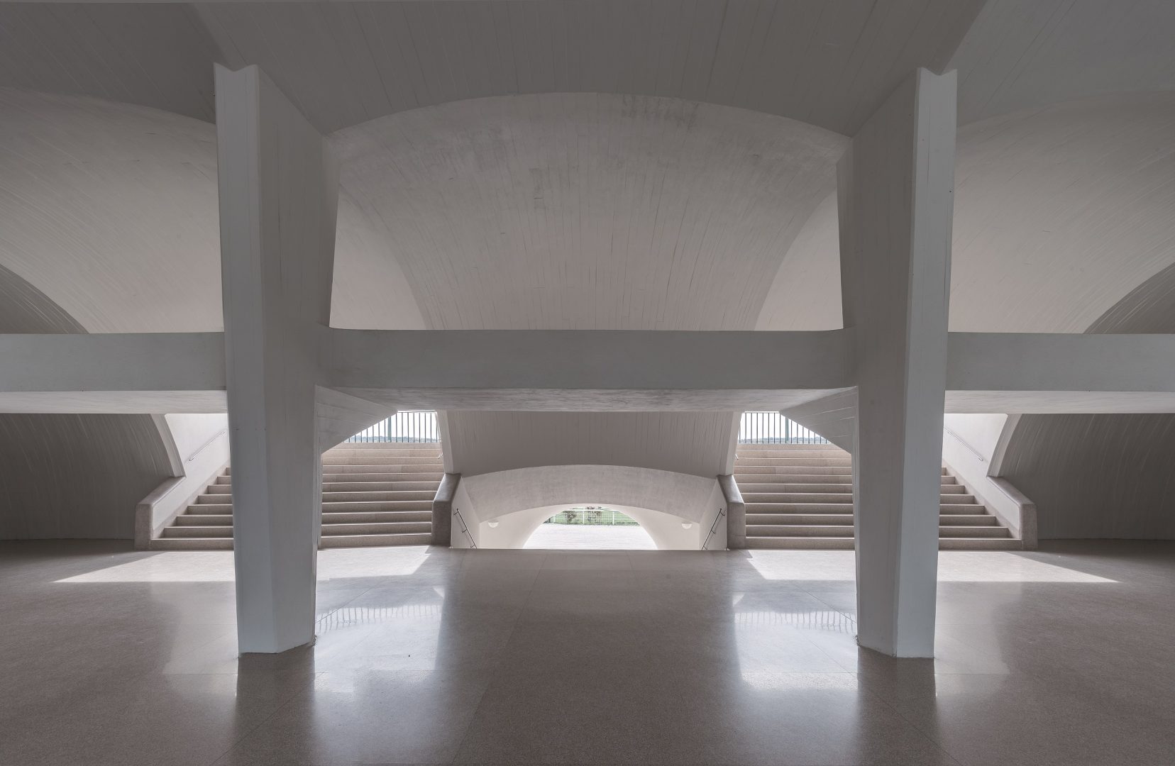 El resto del edificio parece pensado para sostener la grada y su cubierta. En la estructura de soporte se alojan los demás servicios del hipódromo. Y una galería abierta en la planta superior de la edificación esconde un forjado que, en realidad, es un contrapeso esencial para sostener el voladizo de la marquesina.