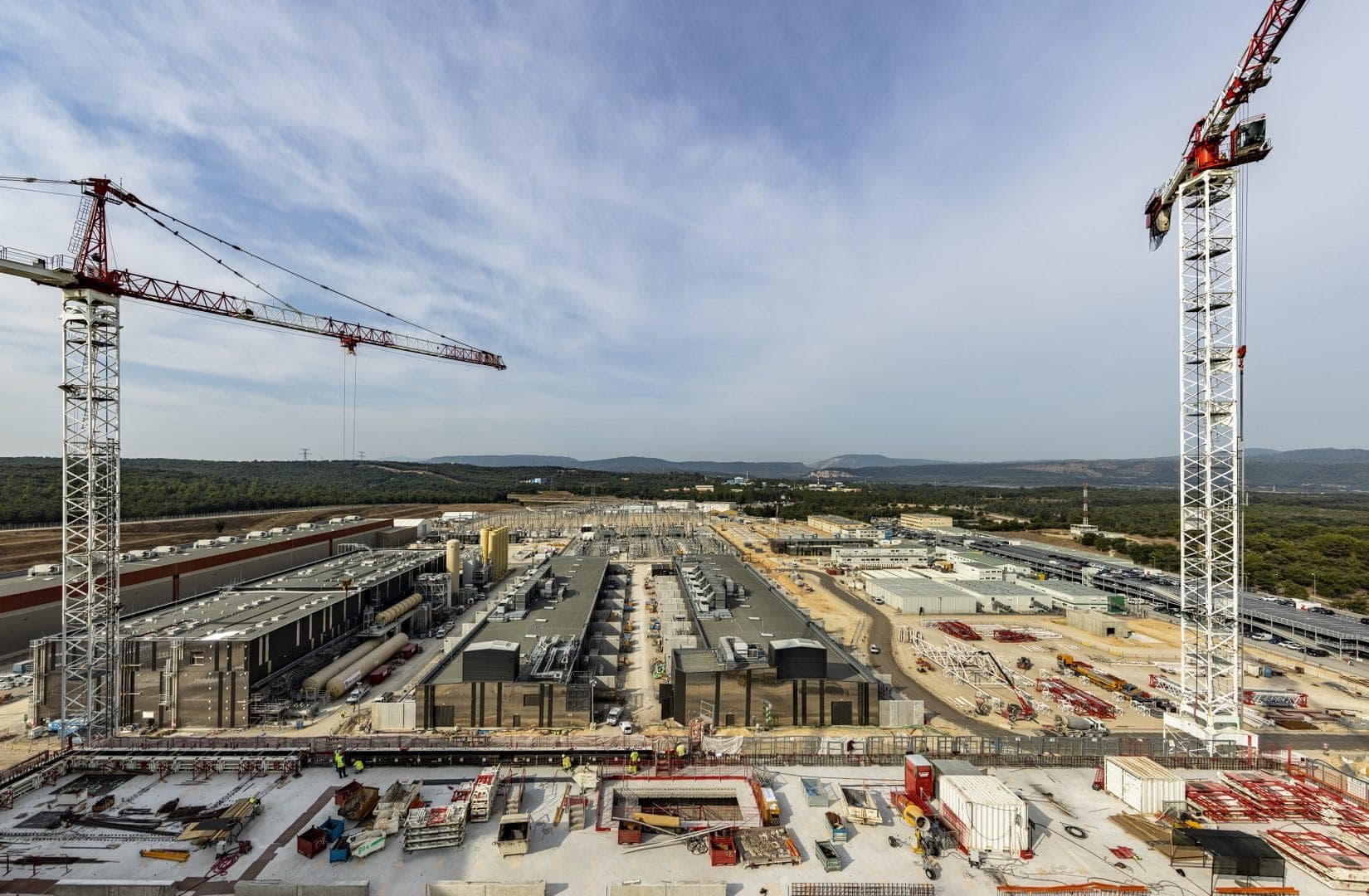 Desde la distancia, las dimensiones del proyecto no se disimulan. En total, ocupa 42 hectáreas en las que se levantan 39 edificios, siete de los cuales ha construido Ferrovial. Más de 2.000 empleados trabajan ya en el ITER, que espera obtener los primeros resultados en 2025.