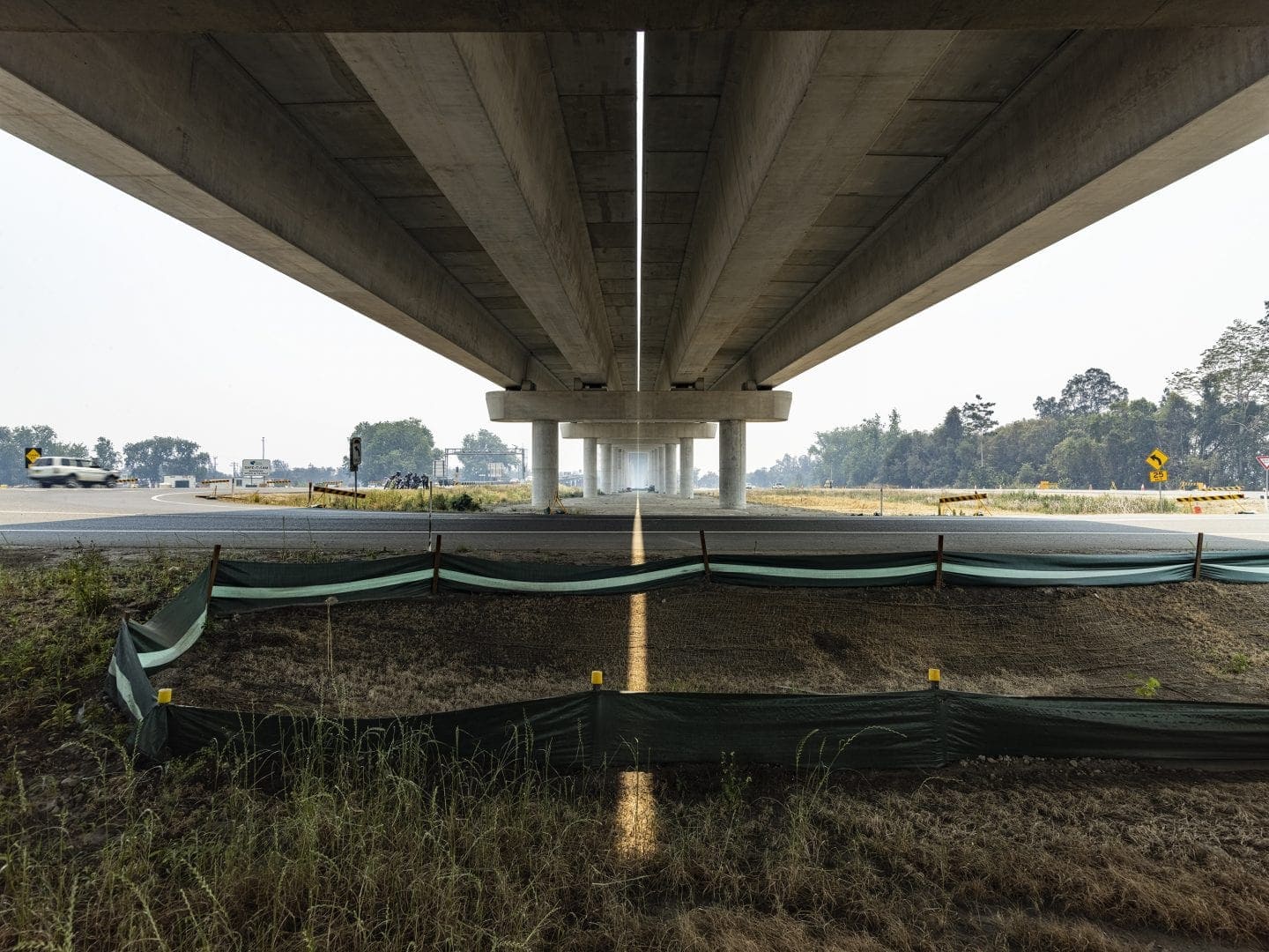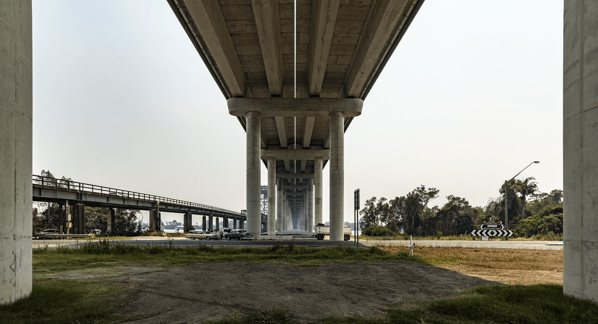 Desde cualquiera de las orillas, la línea de pilares que sustentan el nuevo puente se pierde en el horizonte. Bajo el implacable sol australiano, a lo largo de 1,5 kilómetros, las columnas van poco a poco levantando el peso de las vigas de hormigón hasta alzarlas 30 metros sobre el curso del Clarence. En total, 36 vanos, con una luz máxima de 43,3 metros, para completar el puente más largo de la Pacific Highway en Nueva Gales del Sur.