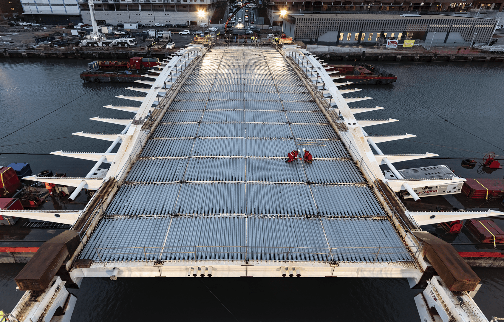 Una maniobra compleja de ingeniería para resolver un proceso de meses en unas pocas horas. Un nuevo puente, y ya van 14, sobre el río Nervión. Una segunda conexión de la isla de Zorrozaurre con la ciudad que la rodea, Bilbao, a través del canal de Deusto.
