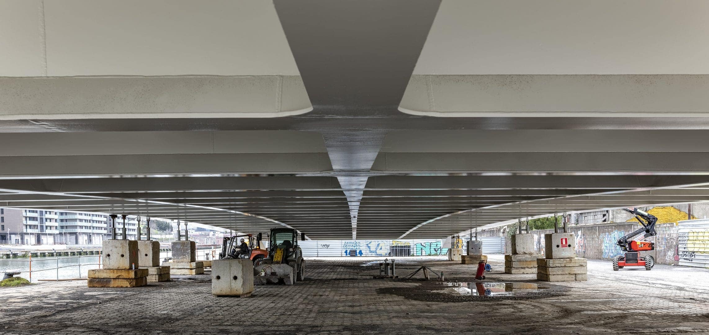 El llamado Puente de San Ignacio, colocado en abril de 2020 sobre la ría de Bilbao, es un viaducto de una sola piza, sin juntas de dilatación. Su estructura de acero al carbono y hormigón transmite ligereza, pero es robusta. Su tablero, de 28 metros de ancho, está flanqueado por dos arcos simétricos que se elevan 34 metros en la parte central. En su conjunto, el puente salva una luz de 75 metros sin más apoyos que las orillas.